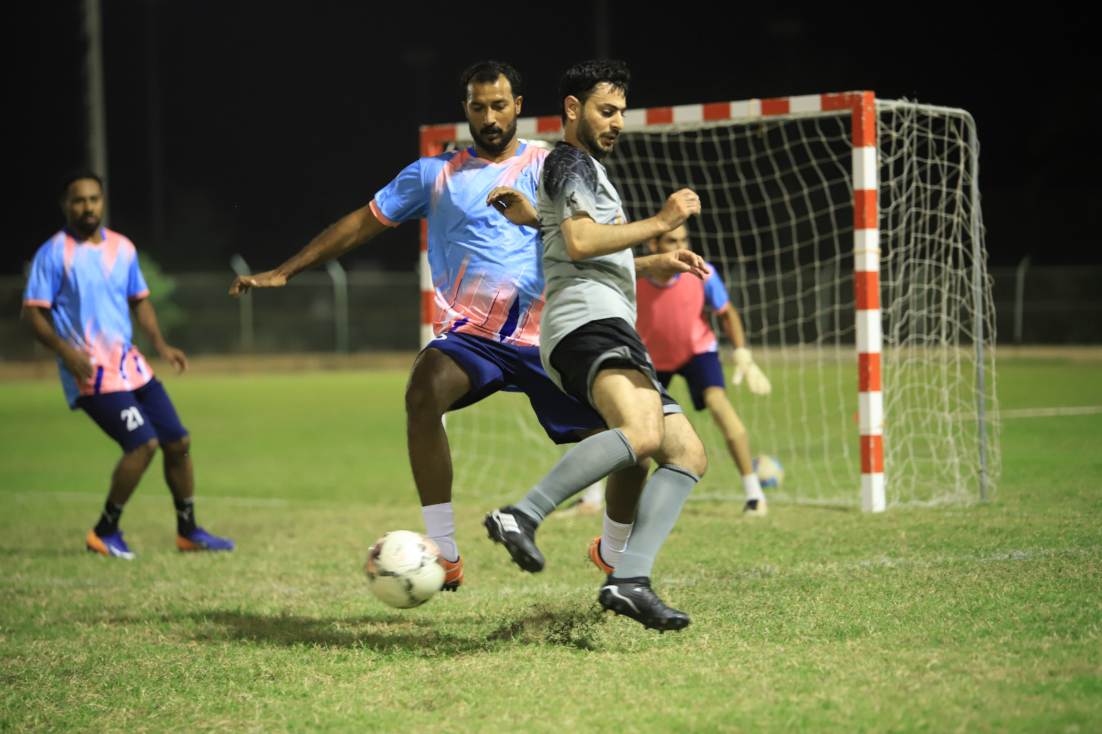 في اللقاء الأول فاز فريق خدمات الأمن والسلامة على المديرية العامة للثروة الزراعية والسمكية وموارد المياه بخماسية نظيفة سجلها كلا من حمير سليمان المعولي (هدفين) وحسن عبدالله البلوشي ونايف شعبان العجمي ومازن الفارسي.
