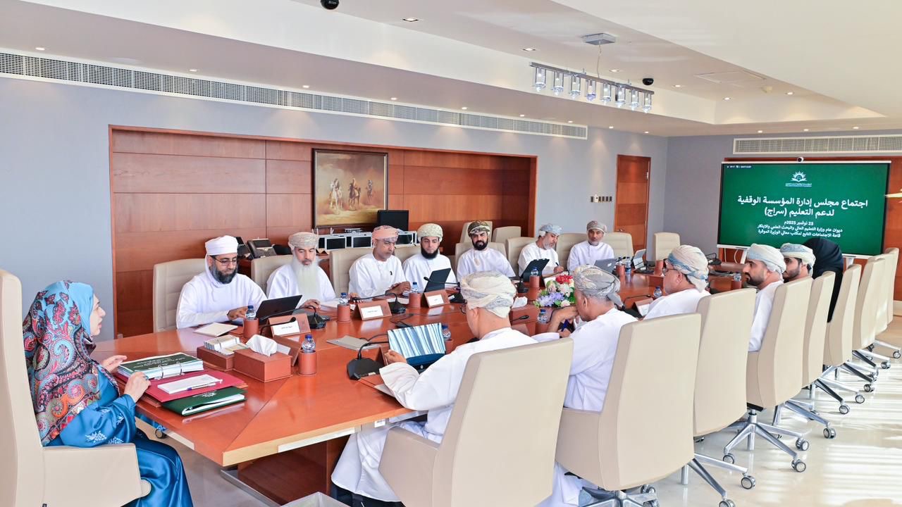 عقد مجلس إدارة المؤسسة الوقفية لدعم التعليم (سِراج) اليوم اجتماعه الثالث لعام 2025 بديوان عام وزارة التعليم العالي والبحث العلمي والابتكار، برئاسة معالي الدكتورة رحمة بنت إبراهيم المحروقية وزيرة التعليم العالي والبحث العلمي والابتكار، رئيسة مجلس إدارة المؤسسة.