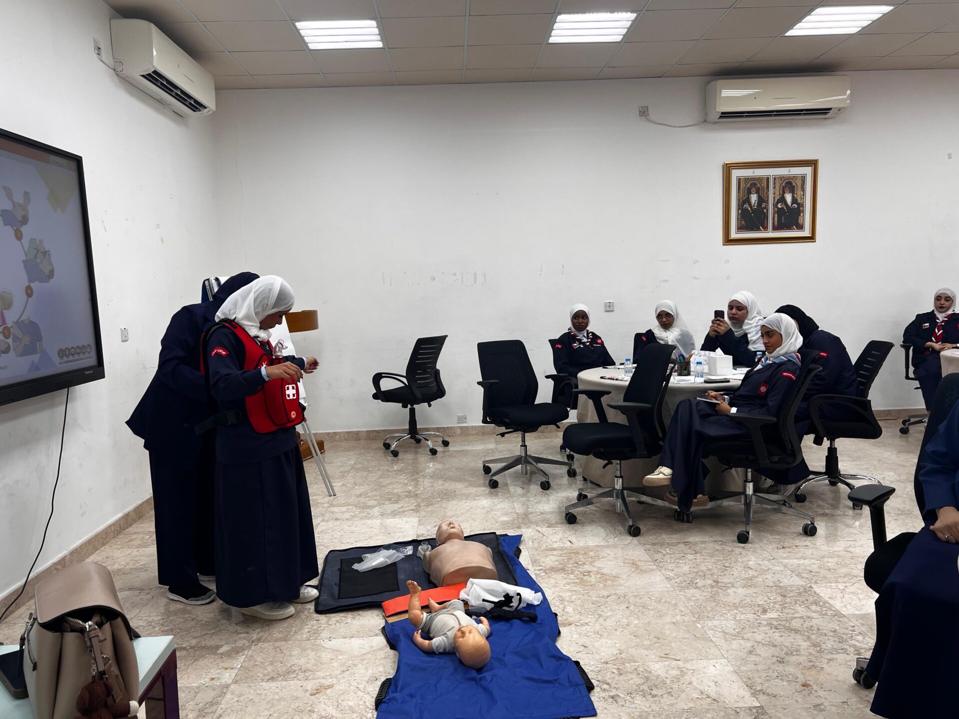 تضمن اليوم الأول مجموعة من الجلسات التدريبية المتخصصة؛ حيث بدأت الفعاليات بالتطبيق العملي لمهارات مراسم رفع وإنزال العلم، تلتها جلسة الإسعافات الأولية، ثم شرح المفاهيم والمصطلحات الأساسية في مرحلة الجوالات. كما اشتمل البرنامج على جلسات موسعة حول نظام الرهوط من حيث التشكيل والمسميات، إضافة إلى مجلس الرهوط والأدوار والمسؤوليات.