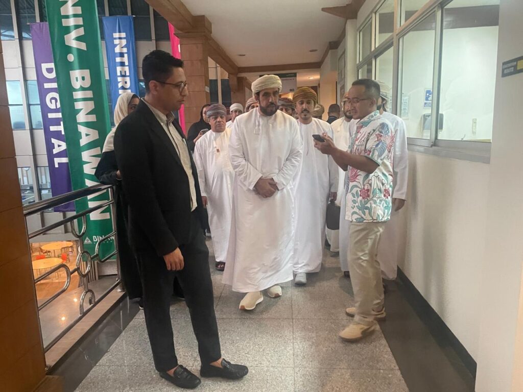 كما قام الوفد ضمن برنامجه لهذا اليوم بزيارة جامعة بيناوان في العاصمة جاكرتا حيث جرى التعرف على تاريخ الجامعة والتخصصات العلمية والبرامج التدريبية التي تقدمها فضلاً عن استعراض أوجه التعاون الممكنة بين الجامعة والمؤسسات الأكاديمية والبحثية في سلطنة عُمان ولاسيما في مجالات الابتكار وريادة الأعمال والتقنيات الحديثة.