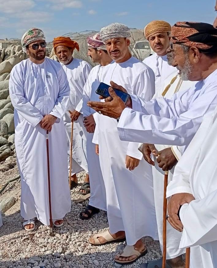 حيث تم خلال المعاينة لقاء المشايخ والأهالي بالمنطقة بحضور سعادة الشيخ سالم بن علي المهري عضو مجلس الشورى والشيخ عبود بن صنجور عضو المجلس البلدي ممثلي الولاية ، والوقوف ميدانياً على مشروع إنشاء المرفأ واستعراض ماتم بشأنه من مطالبات أهلية ولقاءات واجتماعات سابقة مع المعنيين بكلاً من الوزارة والمديرية والشركة المنفذة للمشروع ، والإستماع إلى مطالب المواطنين ومقترحاتهم ووجهات نظرهم المتعلقة بإنشاء هذا المشروع ورصدها من قبل المختصين ليتم دراستها وإمكانية النظر فيها بما يخدم المشروع ويضمن تنفيذه بالطريقة المناسبة التي تخدم المواطنين بالمنطقة .