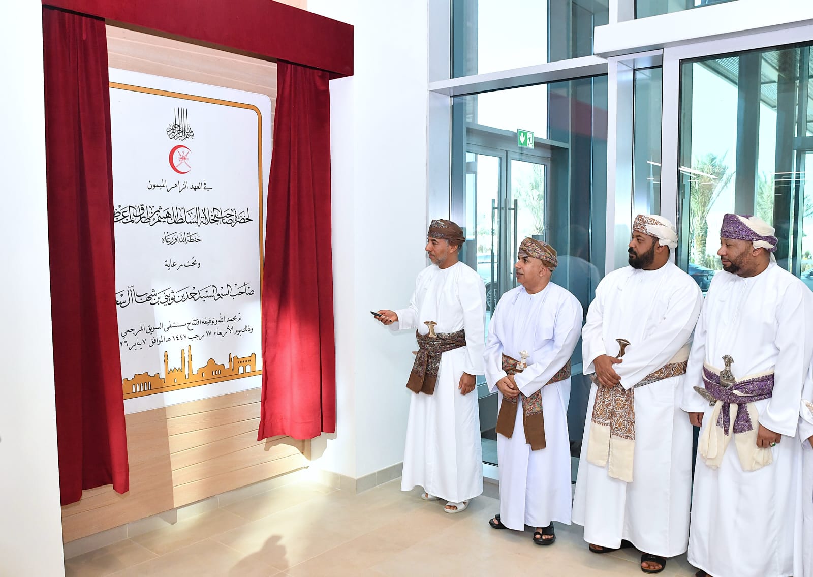 وخلال الاحتفال أزاح صاحب السمو السيد حمد بن ثويني آل سعيد ستارة اللوحة التذكارية معلنا افتتاح مستشفى السويق المرجعي رسميا، واطلع والحضور على عدد من أقسام المستشفى ومرافقه المختلفة، واستمع إلى شرح واف عن الخدمات التي يقدمها .