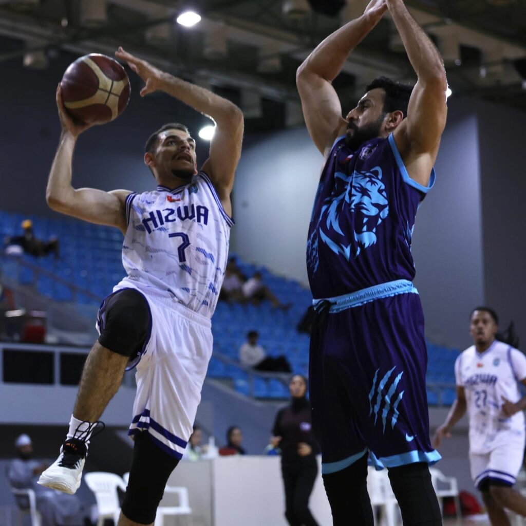 المباراة الأولى نجح فيها نزوى من الفوزعلى صلالة بنتيجة 104-63 في مباراة جاءت لعبا ونتيجة لصالح نزوى رغم البدايات الجيدة لصلالة في أول أربع دقائق من المباراة والتي تقدم فيها على منافسه ، لكن نزوى يعود ويقلب الطاولة ويعمق الفارق خلال الفترات الأربعة بفضل تميز لاعبيه والذي برز منهم في التسجيل المحترف كينجسلي ومحمد العنقودي ،وسعيد غسان وأكرم الراشدي ، فيما برز من صلالة أيمن مستهيل الذي كان أبرز المسجلين وماجد الشاجبي وأحمد الجهوري، في مباراة تقدم صلالة في بداياتها بنتيجة 12-5، لكن نزوى يعود ويقلب النتيجة بتسجيل 8 نقاط عن طريق لاعبيه كينجسلي وحسين الكندي ومحمد العنقودي ليتقدم نزوى النتيجة 13-12، ويواصل الفريق نشاطه بتسجيل نقطتين عن طريق كينجسلي ليتسع الفارق 15-12، ويرد لاعب صلالة محمد الهوتي بتسجيل نقطتين بعد تسديدة من تحت السلة، ويستمر نزوى في توسع الفارق بتسجيل 6 نقاط عن طريق عبدالله القاسمي وكينجسلي ليتقدم فريقهم 21-14، ويواصل الفريق توسيع الفارق لينتهي الربع الأول بتقدم نزوى على صلالة بنتيجة 26-14.