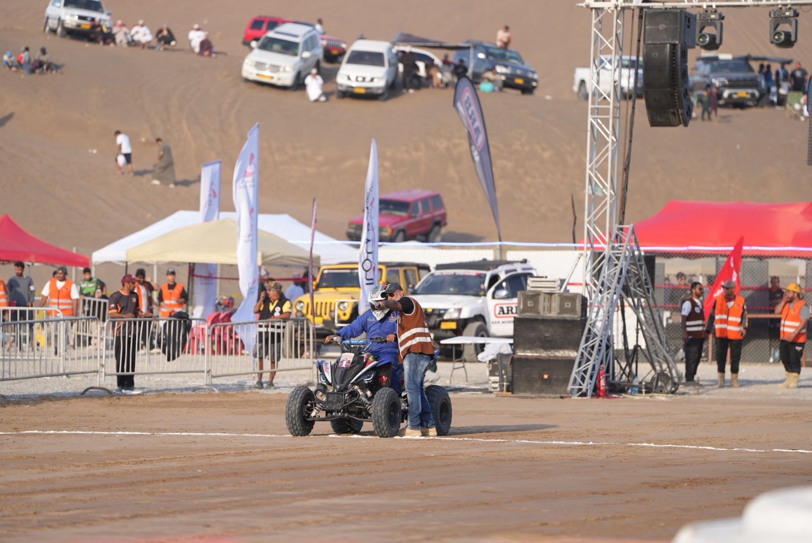 من جانبه، قال الدكتور عصام عبدالرحيم البرّام، رئيس النادي العُماني لفرق الدفع الرباعي، إن بطولة خبة القعدان الدولية للتسارع الرملي (النسخة الثالثة) تُقام ضمن فعاليات «جرّب جنوب الباطنة»، بتنظيم وإشراف النادي العُماني لفرق الدفع الرباعي، وبمشاركة نحو 120 متسابقًا يتنافسون ضمن 9 فئات مختلفة للسيارات والدراجات.
