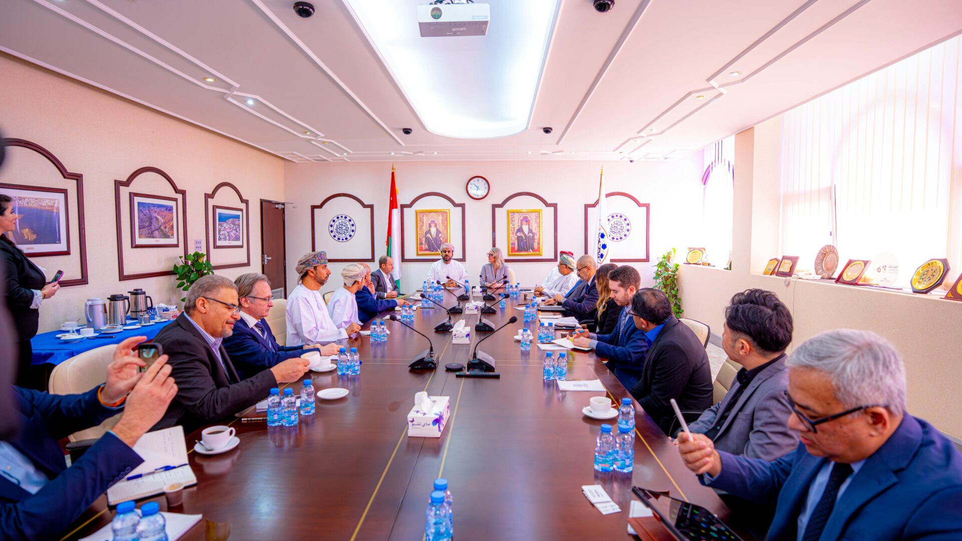 استقبل سعادة الشيخ فيصل بن عبدالله الرواس رئيس مجلس إدارة غرفة تجارة وصناعة عمان اليوم وفدا تجاريا من الولايات المتحدة الأمريكية، في المقر الرئيسي للغرفة بمسقط، بحضور عدد من أعضاء مجلس إدارة الغرفة، وعدد من أصحاب وصاحبات الأعمال من سلطنة عمان والولايات المتحدة الأمريكية. يأتي ذلك في إطار تعزيز العلاقات الاقتصادية والتجارية بين البلدين الصديقين، وبحث اللقاء فرص التعاون والاستثمار المشترك، بما يخدم المصالح المتبادلة ويدعم توجهات التنويع الاقتصادي.