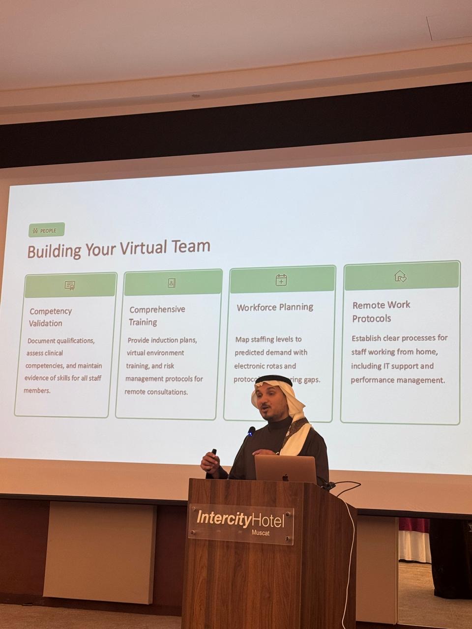 البرنامج الذي يستمر خمسة أيام يستهدف تدريب خمسة وعشرين متدربًا من الكوادر الطبية والطبية المساندة والتقنية؛ لتطوير كفاءاتهم وتمكينهم من تقديم خدمات الرعاية الصحية الافتراضية وفق أعلى المعايير المهنية والتنظيمية المعتمدة.