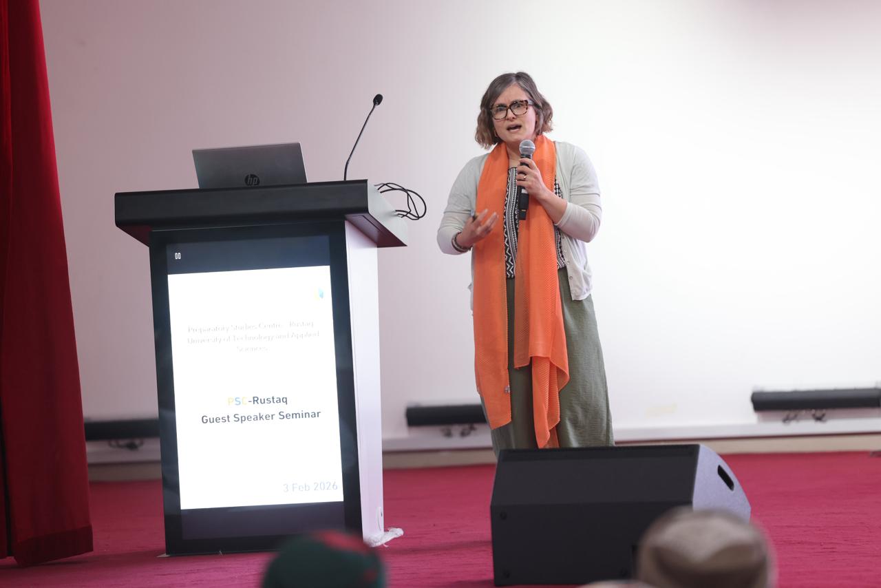 نظمت جامعة التقنية والعلوم التطبيقية كلية التربية بالرستاق ممثلة بمركز الدراسات التحضيرية، وبالتعاون مع قسم اللغة الإنجليزية وآدابها ، وقسم البحوث والاستشارات جلسات أكاديمية تستضيف الدكتورة أنجيلا م غايتون، محاضِرة وباحثة في اللغويات التطبيقية والتربية بجامعة غلاسكو المملكة المتحدة، وبحضور الدكتورة سارة بنت محمد البهلانية عميدة الكلية وعدد من الأكاديميين وأعضاء هيئة التدريس والباحثين .