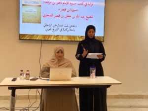 كما أشارت إلى أهمية كتاب “سيرة الإمام ناصر بن مرشد” من الناحية التاريخية والعلمية، حيث يعد من المصادر المبكرة التي وثقت جوانب مهمة من حياة الإمام والأحداث التي شهدتها تلك المرحلة من تاريخ عُمان، واتسمت الأمسية بطابع ثقافي وتاريخي مميز، حيث قدمت المحاضِرة معلومات وإضاءات ثرية حول المؤلف والكتاب، وسط تفاعل الحضور من المثقفين والمهتمين بالتاريخ العُماني. وفي ختام الجلسة قام المدير العام للمديرية العامة للثقافة والرياضة والشباب بمحافظة شمال الباطنة الأستاذ موسى القصابي بتكريم الدكتورة هدى الزدجالي تقديراً لما قدمته من طرح علمي ومعلومات قيّمة أسهمت في إثراء الأمسية الثقافية.