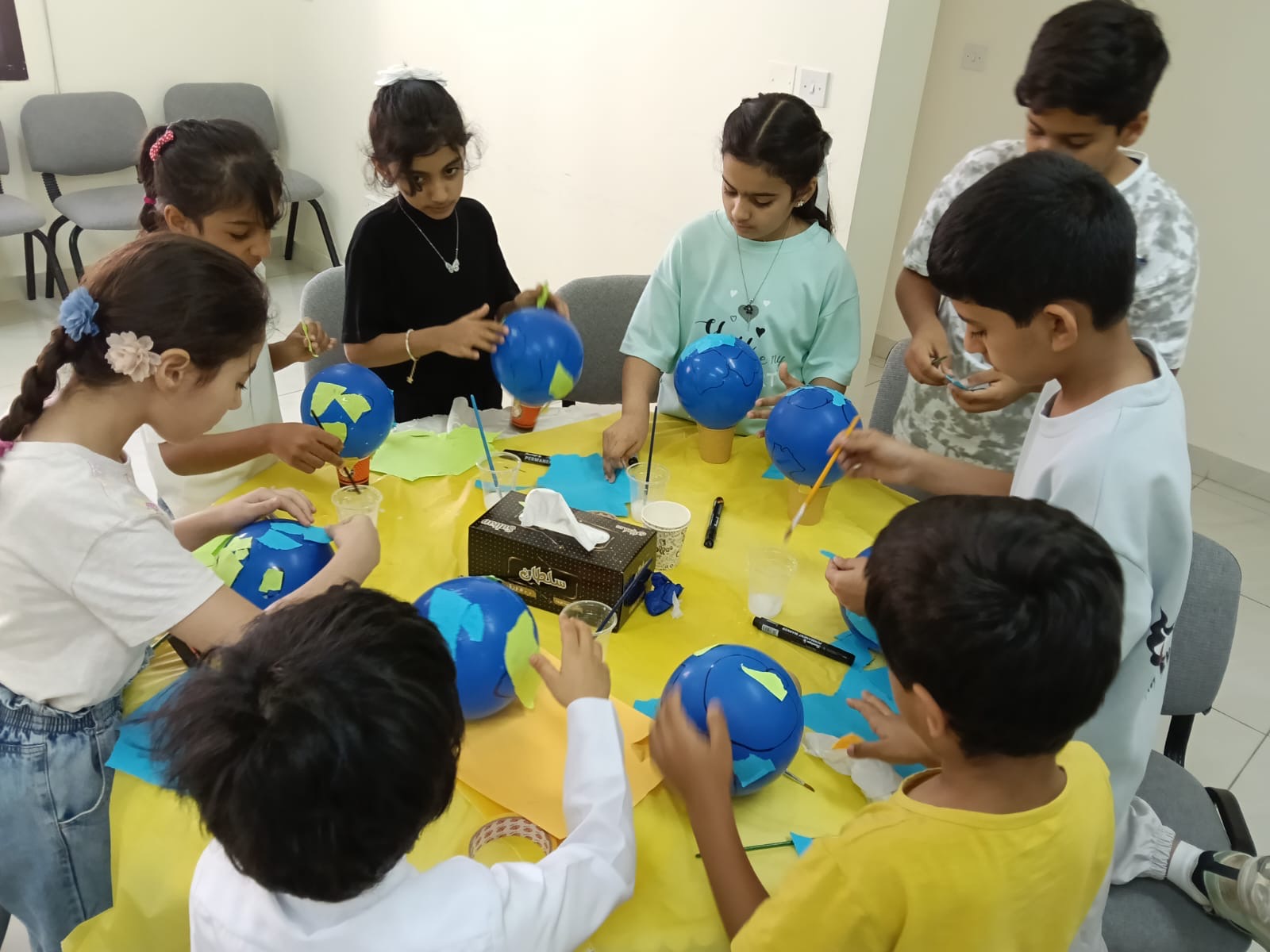 كما أظهر الصغار إبداعهم في تلوين رسومات تعكس مخاطر تآكل طبقة الأوزون، بالإضافة إلى مشاركتهم الفعّالة في ورشة عمل بعنوان “صنع مجسم الكرة الأرضية”، والتي هدفت إلى تعزيز القيم البيئية عبر أنشطة فنية ممتعة وتفاعلية.