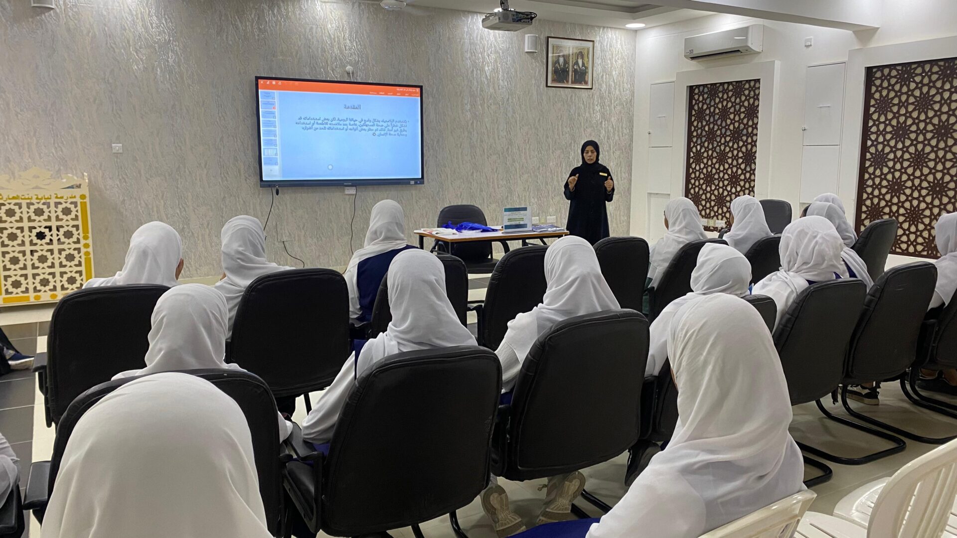 كما قدّمت جوهرة الساعدية، أخصائية إعلام بإدارة حماية المستهلك، عرضًا بعنوان «دلائل الأرقام على العبوات البلاستيكية»، عرّفت من خلاله الطلبة بالرموز والأرقام المطبوعة على العبوات البلاستيكية، وأهمية وعي المستهلك بقراءتها لمعرفة نوع البلاستيك ومدى أمان استخدامه وتأثيره على الصحة. كما تطرقت إلى دور حماية المستهلك في التوعية بمخاطر بعض المنتجات البلاستيكية وسبل الوقاية منها.