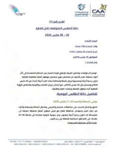 تقرير رقم (1) عن حالة الطقس المتوقعة خلال الفترة من ٢٠ إلى ٣٠ مارس الجاري