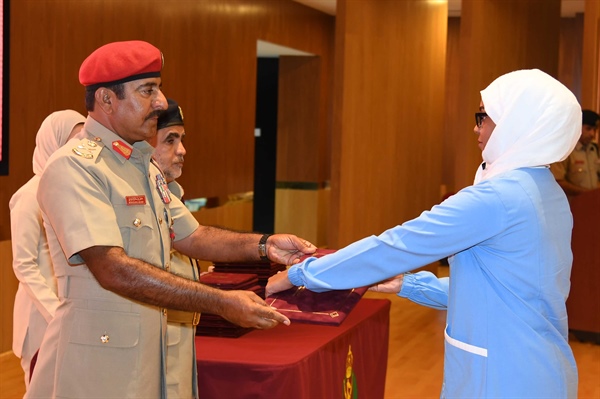 وقام اللواء الركن قائد الجيش السلطاني العماني راعي المناسبة في الختام بتسليم الشهادات والجوائز التقديرية لأوائل خريجي الدورات .