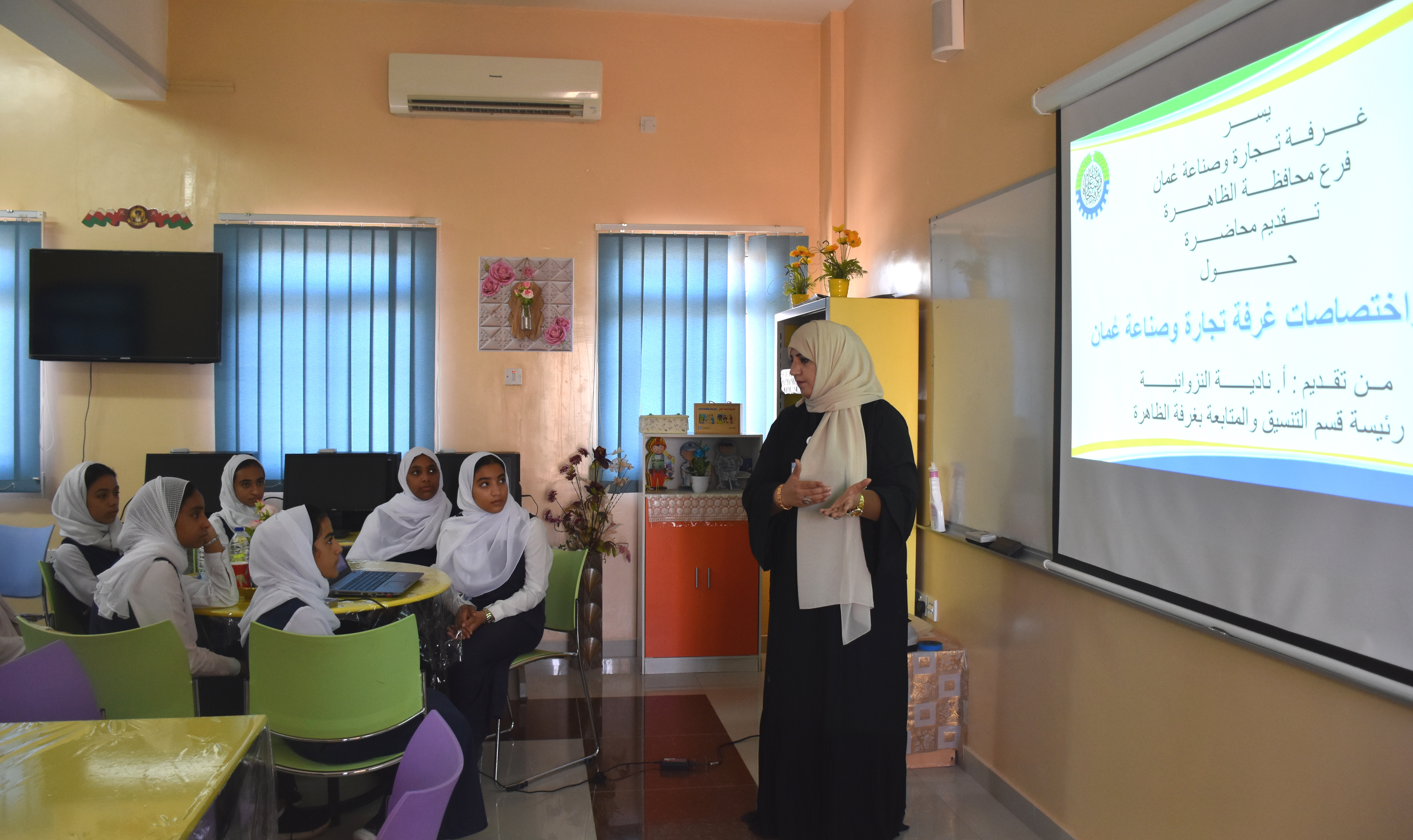 فرع الغرفة بالظاهرة يعرف بخدماته في مدرسة ذات النطاقين للتعليم الاساسي