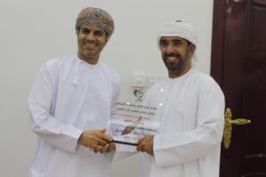 وفي الختام قام سالم بن عبدالله الغيثي نائب رئيس مجلس الإدارة بتكريم سعيد البوسعيدي تقديراً لجهوده في تقديم المحاضرة.