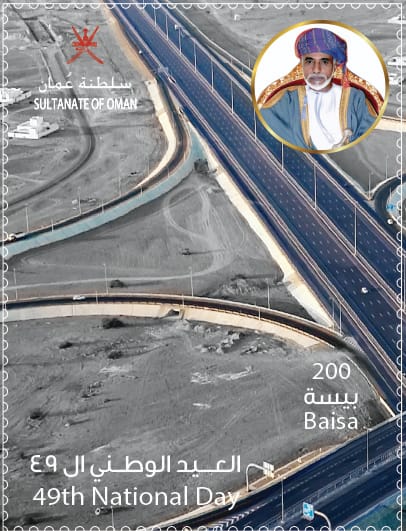بريد عُمان تطلق طابعًا تذكاريًا بمناسبة العيد الوطني الـ 49 المجيد يبرز مشروع طريق الباطنة السريع
