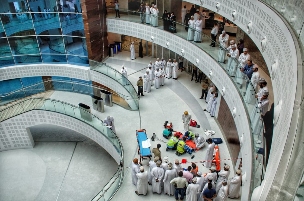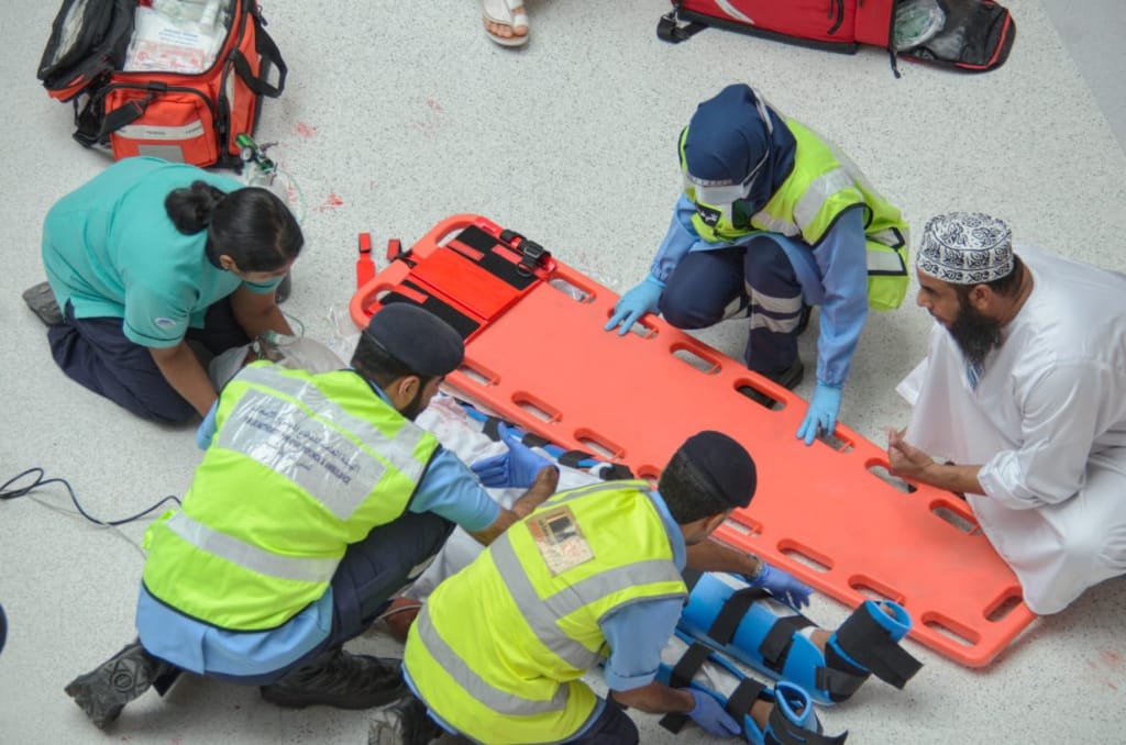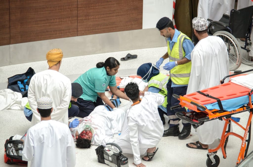 نفذت إدارة الدفاع المدني والإسعاف بمحافظة مسقط تمريناً لإسعاف شخص مصاب جراء سقوطه من الطابق الثاني في المبنى الرئيسي للشركة العمانية للإتصالات عمانتل بمدينة العرفان لإختبار جاهزية مسعفي الشركة للتعامل مع هذا النوع من الحوادث.