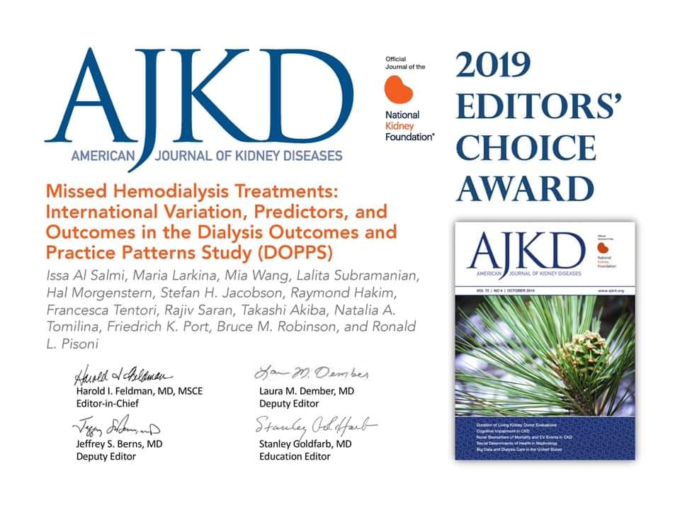 عيسى السالمي يحصل على جائزة اختيار المحررين 2019 من قبل المجلة الأمريكية لأمراض الكلى AJKD