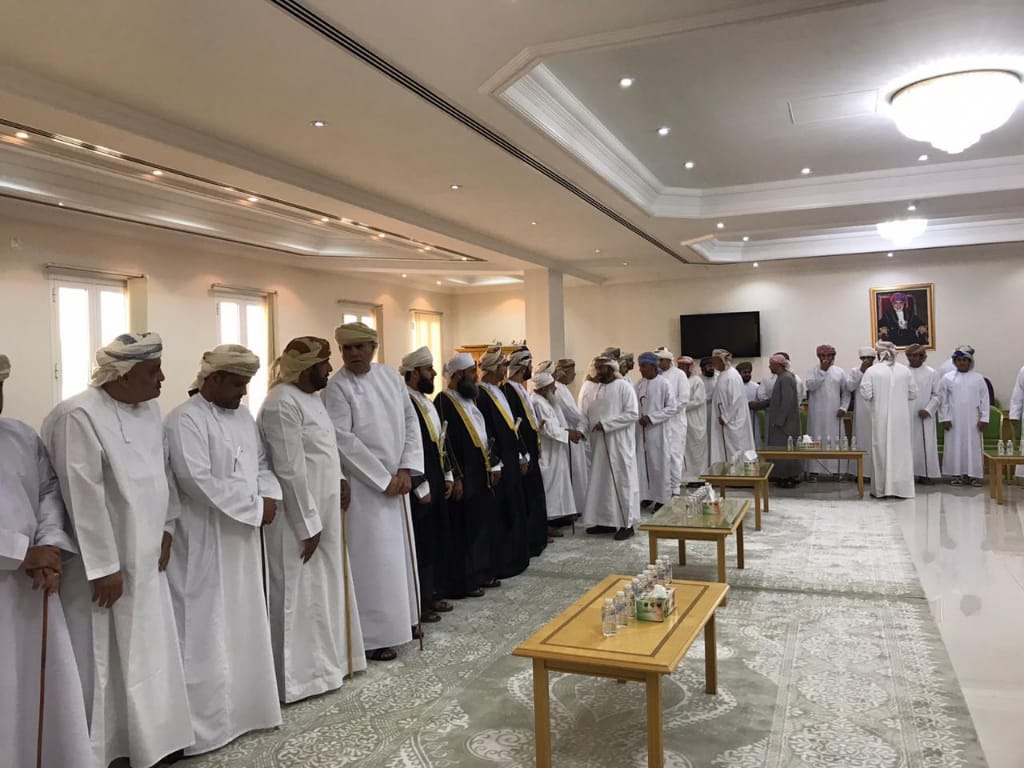فقد استقبل سعادته أصحاب الفضيلة القضاة والمشايخ والرشداء والمواطنين والمقيمين والذي ابتهلوا للعلي القدير أن يتغمد جلالة السلطان قابوس بن سعيد المعظم واسع رحمته ويسكنه فسيح جناته، مستذكرين مواقف جلالته النبيلة التي سطرتها الإنجازات التنموية الشاملة التي عمت جميع ربوع الوطن، ومؤكدين على مواصلة العطاء لمزيد من الرفعة لهذا الوطن العزيز في عهد حضرة صاحب الجلالة السلطان هيثم بن طارق المعظم-حفظه الله ورعاه – ، معاهدين جلالته بالوفاء لكل منجزات هذا الوطن وللأرث الحضاري الذي بناه المغفور له بإذن الله تعالى حضرة صاحب الجلالة السلطان قابوس بن سعيد بن تيمور المعظم -طيب الله ثراه-