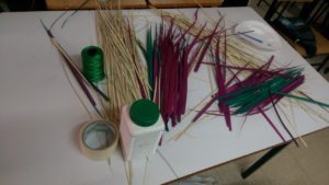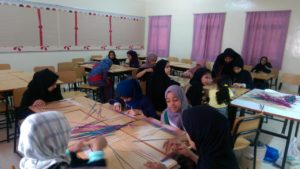 وورشة السعفيات والتي قامت فيها الطالبات بتشكيل خوص النخيل الملون بألوان العلم العماني بأشكال رائعة.