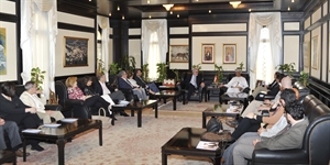 استقبل معالي عبد العزيز بن محمد الرواس مستشار جلالة السلطان للشؤون الثقافية بمكتبه اليوم وفد من