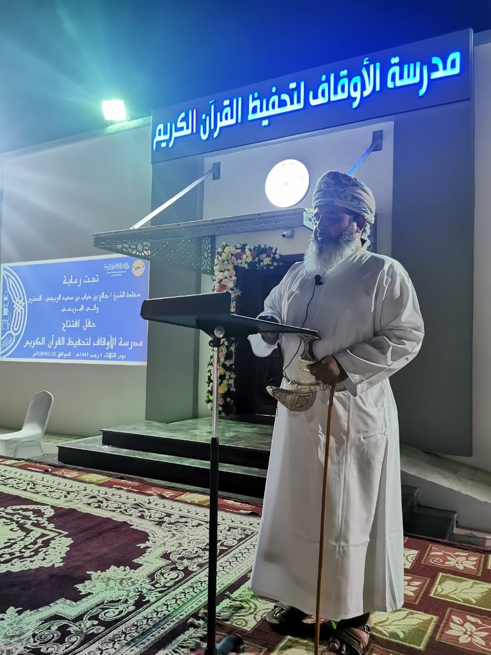 رعى سعادة الشيخ صالح بن ذياب بن سعيد الربيعي والي البريمي حفل افتتاح مدرسة الأوقاف لتحفيظ القرآن الكريم والتي تشرف عليها إدارة الأوقاف والشؤون الدينية بمحافظة البريمي ممثلة بقسم مدارس القرآن الكريم وبدعم من أصحاب الأيادي البيضاء من مشايخ ورشداء وتجار الولاية.