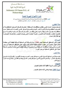 متابعينا الكرام إليكم فيما يلي نشرة الأحوال الجوية في محافظات السلطنة لهذا اليوم : الثلاثاء الرابع من رمضان المبارك 1441هـ الموافق الثامن والعشرين من أبريل 2020م – بإذن الله تعالى .
