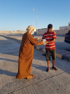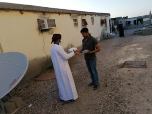 قامت مجموعة من أهالي نيابة جزر الحلانيات ممثلا في اللجنة الخيريه اليوم 3/5/2020 بتوزيع وجبات أفطار صائم على المقيمين والعماله الوافده وبعض المواطنين في نيابة جزر الحلانيات وبلغ عدد الحالات الموزعه لها (50) في أطار برنامجها التطوعي الخيري الذي تقوم به .
