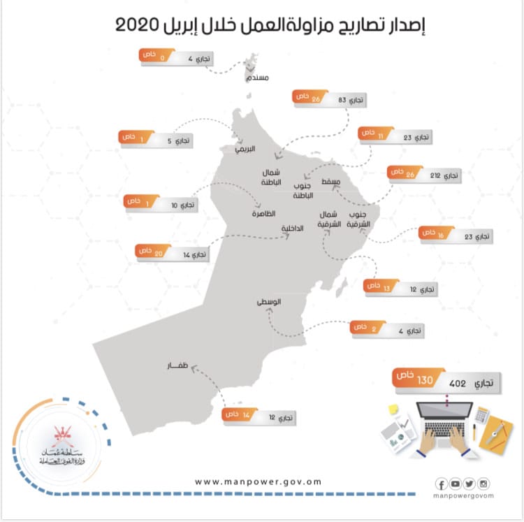 اصدار تصاريح العمل الجديدة خلال شهر ابريل الماضي في جميع