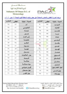 متابعينا الكرام إليكم فيما يلي نشرة الأحوال الجوية في محافظات السلطنة لهذا اليوم : الجمعة الثامن والعشرين من رمضان المبارك 1441هـ الموافق الثاني والعشرين من مايو 2020م – بإذن الله تعالى .