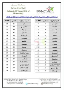 متابعينا الكرام إليكم فيما يلي نشرة الأحوال الجوية في محافظات السلطنة لهذا اليوم : السبت السابع من شوال 1441هـ الموافق الثلاثين من مايو 2020م – بإذن الله تعالى .
