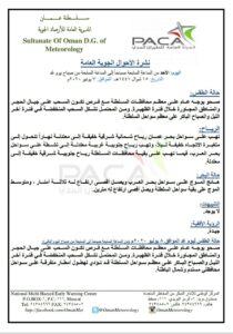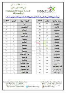 متابعينا الكرام إليكم فيما يلي نشرة الأحوال الجوية في محافظات السلطنة لهذا اليوم : الأحد الخامس عشر من شوال 1441هـ الموافق السابع من يونيو 2020م – بإذن الله تعالى .