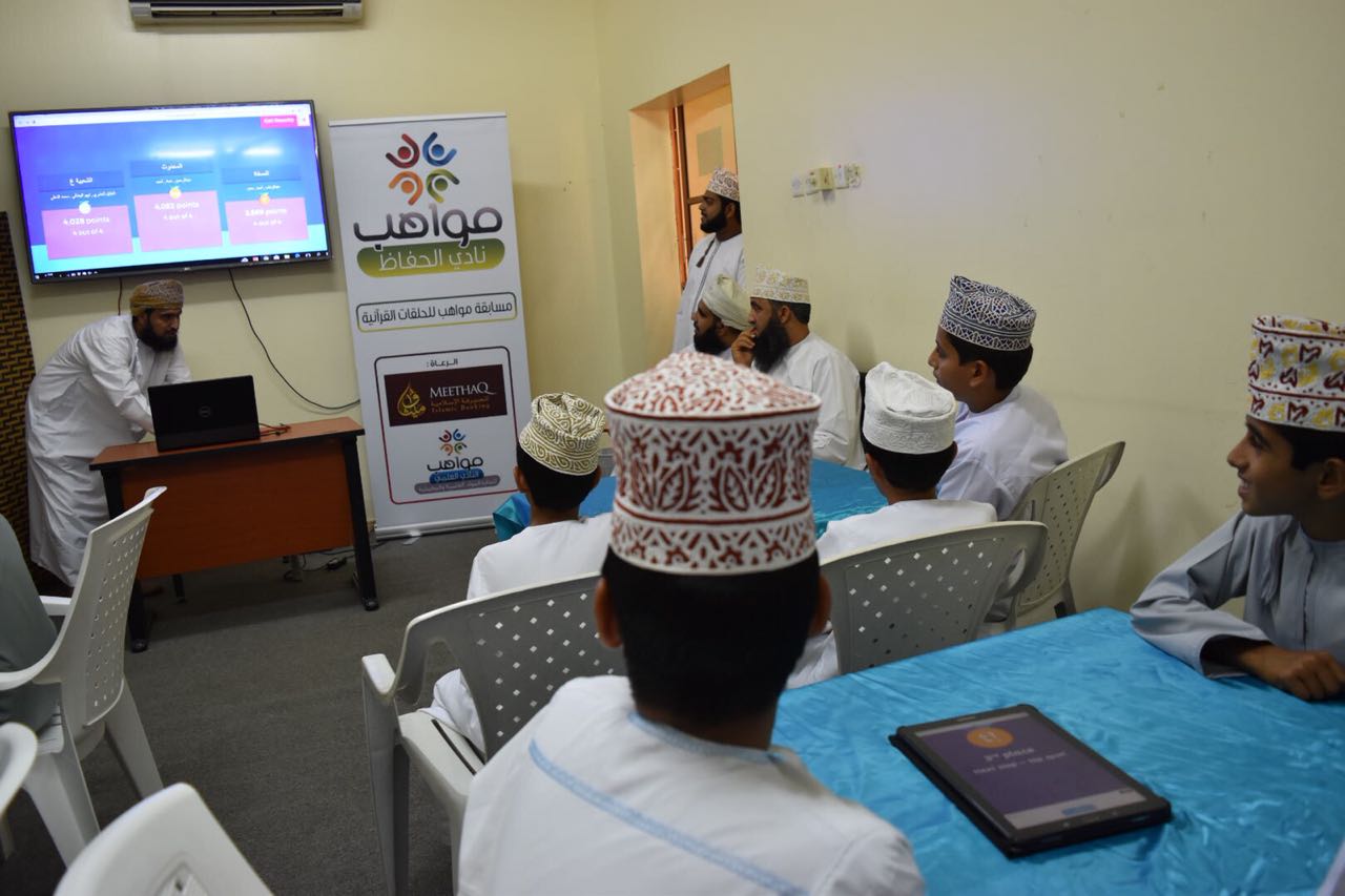 تنظم صباح اليوم مؤسسة مواهب بولاية العوابي بمحافظة جنوب الباطنة فعاليات المباراة النهائية والتي تجمع فريقي الشعبية الغربية ومركز السلان وذلك ضمن حفل ختام أنشطة مواهب الصيفية والذي سيقام بقاعة متعددة الأغراض بمكتب سعادة الشيخ والي العوابي تحت رعاية سعادة الشيخ / هلال بن عبدالرحمن بن سيف الخروصي عضو مجلس الشورى ممثل ولاية العوابي حيث أقام نادي الحفاظ بالمؤسسة مساء أمس (مسابقة مواهب للحلقات القرآنية) والتي تعد جديدة في طرحها إذ تختلف طريقتها عن الطرق التقليدية السابقة حيث تستخدم برنامجا إلكترونيا في طرح الأسئلة للمتسابقين، وهي جديدة في فكرتها كما إن معاييرها تقوم بربط الآيات ومعرفة المعاني واستخراج الأحكام التجويدية في جزء عمَّوتتنافس ثمان فرق من الولاية والفرق عبارة عن بعض الحلقات القرآنية من مختلف القرى والأحياء السكنية الولاية.وكانت اللجنة المنظمة قسمت الفرقالمتسابقة الثمانية لمجموعتين، بحيث تتنافس أربعة فرق في المجموعة الواحدة.