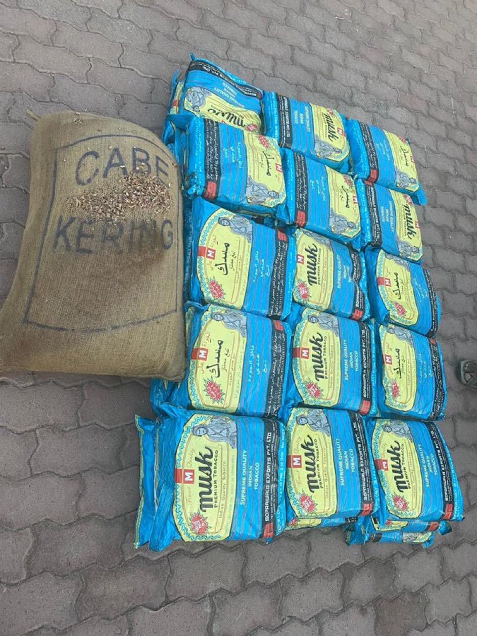 ذكر حساب شرطة عمان السلطانية في تويتر بأن قيادة شرطة محافظة الداخلية قد ضبطت شخصين آسيويين بتهمة حيازة التبغ الممنوع والمتاجرة به، وضُبط بحوزتهما على أكثر من (٤١) كيساً من التبغ، وتم اتخاذ الإجراءات القانونية بحقهما.