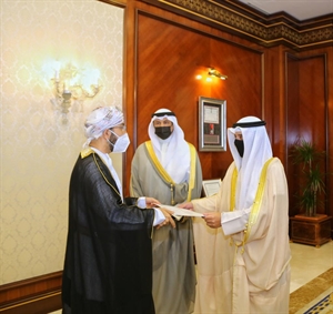 سفير السلطنة المُعيّن لدى دولة الكويت يقدم نسخة من أوراق اعتماده