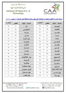 متابعينا الكرام إليكم فيما يلي نشرة الأحوال الجوية في محافظات السلطنة لهذا اليوم : الأربعاء 2 سبتمبر 2020م – بإذن الله تعالى .
