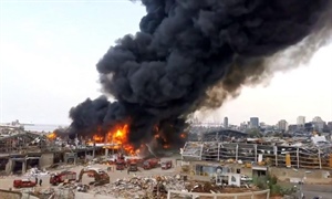 شب اليوم حريق جديد في مرفأ بيروت وشوهد الدخان الأسود يتصاعد، ولم تعرف أسبابه بعد.