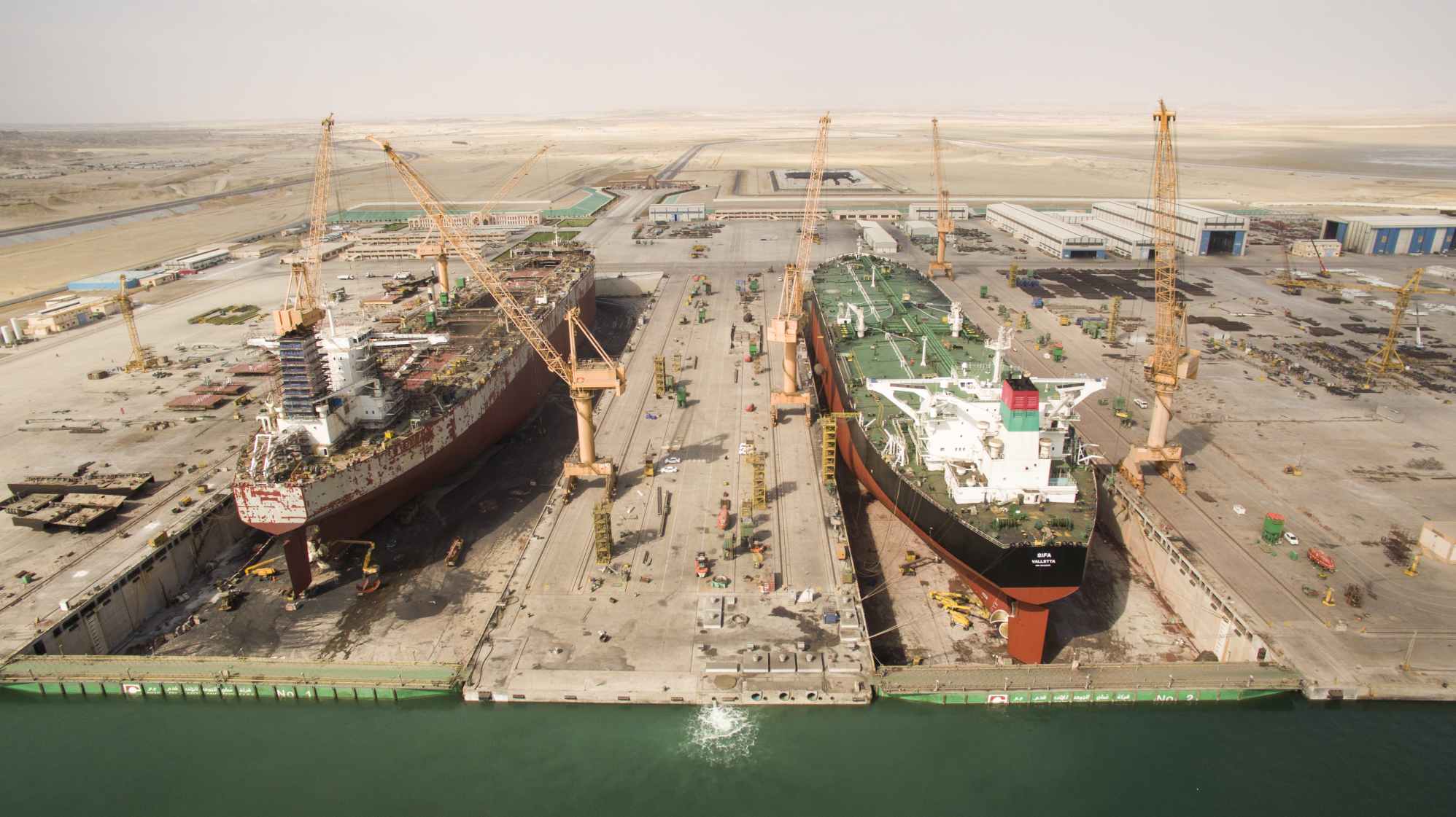 وتمتلك شركة عُمان للحوض الجاف محطات متكاملة لتدوير والتخلّص منالمخلّفات الكيماوية وتصفية ومعالجة المياه المستخرجة من السفن من الموادالزيتية وفق متطلبات الجودة المعتمدة حسب اللوائح البيئية قبل تصريفه فيالبحر، كما يتم بيع الزيت المعاد تدويره إذ بلغت كمية الزيت 4073 طناحتى نهاية اغسطس من العام الجاري 2020م بزيادة نسبتها 140 بالمائة
