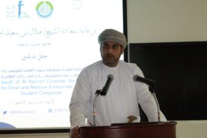 في بداية الاحتفال تم عرض كلمة حضرة صاحب الجلالة السلطان قابوس بن سعيد المعظم ـ حفظه الله ورعاه ـ التي حث من خلالها الشباب على الانخراط في العمل الخاص والأعمال الحرة وعدم الترفع عن العمل في أي مهنة وحرفة ، ثم ألقى المهندس حمود بن سالم السعدي رئيس مجلس إدارة فرع الغرفة بجنوب الباطنة كلمة الغرفة رحب فيها براعي المناسبة والحضور ، ثم قال: لقد حظيت المؤسسات الصغيرة والمتوسطة في السلطنة باهتمام كبير من لدن صاحب الجلالة والحكومة الرشيدة ، وتعتبر هذه المؤسسات العمود الفقري للاقتصاد العماني وهي تساهم في دفع عجلة التنمية لما فيها من مساهمة في الناتج المحلي وخلق قيمه مضافة وتساهم في تخفيف العبء الاجتماعي لقضية البطالة وتشغيل الشباب ، وجاءت الجائزة انطلاقا من اهتمام الغرفة بتنمية روح التنافس والابداع المتجدد لدى مؤسسات القطاع الخاص والشركات الطلابية في المحافظه من أجل بناء اقتصاد قوي قائم على أسس متينة تتعدد فيه مصادر الدخل وتنمو من خلاله المدخرات وتشجيع المؤسسات الصغيرة والمتوسطة والشركات الطلابية على النمو والابداع المتجدد وتشجيعها لتكوين قاعدة اقتصادية متينة لشريحة كبيرة من المجتمع ، وأشار في كلمته بأن عدد مؤسسات القطاع الخاص بمحافظه جنوب الباطنة بلغ حتى سبتمبر الجاري أكثر من 22 ألف مؤسسة مسجلة بمختلف الدرجات ، والتنافس الإيجابي يقفز بهذه المؤسسات إلى مستويات أكبر من العطاء والإنتاجية ، وهذه الجائزة تعتبر فرصة ذهبية لمن يحسن الاستغلال حيث تساهم بشكل كبير في ظهور المؤسسات الفائزة للمجتمع على وجه الخصوص وبيئة الأعمال على وجه العموم.