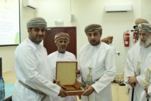 بعد ذلك قام سعادة الشيخ هلال بن سعيد بن حمدان الحجري محافظ جنوب الباطنة راعي المناسبة بتدشين الجائزة ، ثم قدم المهندس حمود بن سالم السعدي رئيس مجلس إدارة فرع الغرفة بجنوب الباطنة هدية تذكارية لراعي المناسبة.