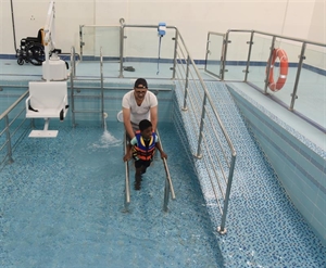 وتعتبر قاعة العلاج المائي من الطرق العلاجية المتطورة لتحسين القدرات الحركية لمختلف الإعاقات الجسدية وحالات اضطراب طيف التوحد ومتلازمة داون حيث تسهم التمارين العلاجية في تقوية العضلات وتنمية المهارات الحركية والوظيفية عبر مقاومة الماء وزيادة تدفق الدورة الدموية وتحسين التنفس بالإضافة إلى الفوائد النفسية والاجتماعية.