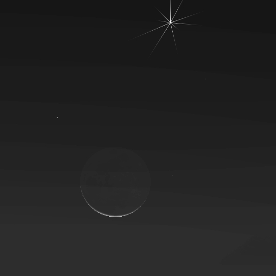 القمر والزهرة يقعان في ترتيب ثاني وثالث ألمع الأجسام على التوالي بعد الشمس في قبة السماء لذلك يمكن رؤيتهما مع بداية ضوء الصباح في منظر جميل.