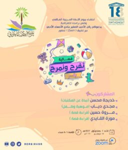 وفي السياق ذاته يقيم براعم ركن الأديب الصغير في النادي بإشراف الأستاذة مها النصار فعالية ” نفرح ونمرح ” عبر تطبيق (ZOOM ) مساء الخميس ١٧ / ديسمبر ٢٠٢٠