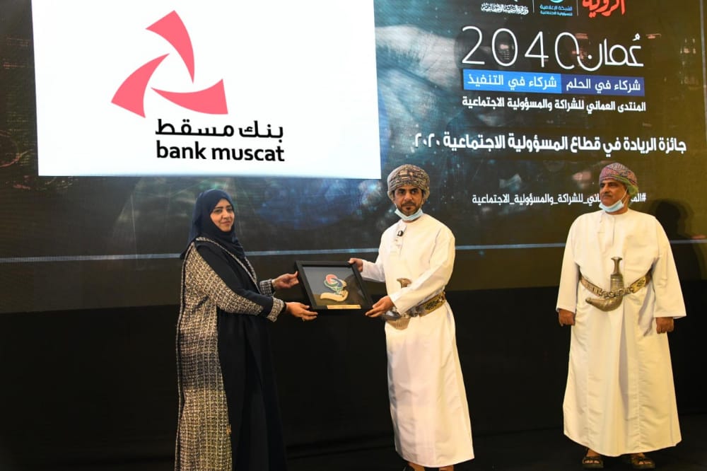 تكريم بنك مسقط بجائزة الريادة تقديراً لجهوده في المسؤولية الاجتماعية والاستدامة وخدمة المجتمع