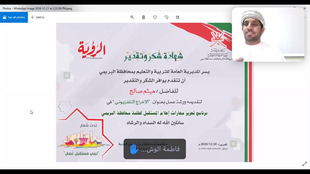 برعاية الرؤية التعريف بالمهارات الفنية للكتابة الصحفية والإخراج التلفزيوني لطلاب مدارس البريمي