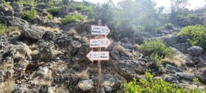 بعد ذلك من أراد الرجوع والنزول إلى نقطة البداية حيث قرية (وكان) بوادي مستل، أو مواصلة المشي لقرية المناخر أو سيح قطنة بالجبل الأخضر بين الصعود والنزول فإن الألوان الإرشادية تقوده لمفترق طرق ترابية جبلية بها إشارات بالأسهم والكتابة التي تشير لقرية المناخر بالجبل الأخضر أو الذهاب ثم النزول إلى قرية (حدش) بوادي مستل أو الرجوع مرة أخرى لمسار قرية وكان.