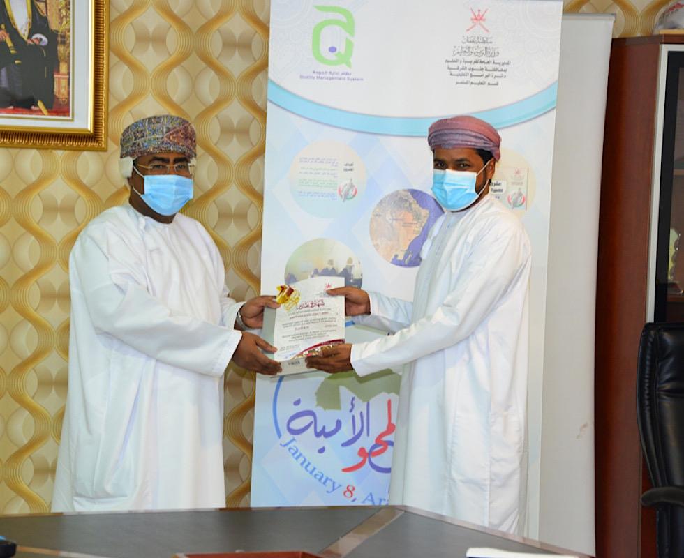 احتفلت المديرية العامة للتربية والتعليم بمحافظة جنوب الشرقية ممثلة بدائرة البرامج التعليمية قسم التعليم المستمر باليوم العربي لمحو الأمية والذي يصادف الثامن من يناير من كل عام وذلك تحت رعاية عبدالله بن علي الفوري المدير العام وبحضور الدكتور يعقوب بن سالم السنيدي المدير العام المساعد للبرامج التعليمية والتقويم التربوي ومدير دائرة البرامج التعليمية ومساعديه وعدد من موظفي ومشرفي قسم التعليم المستمر والمكرمين