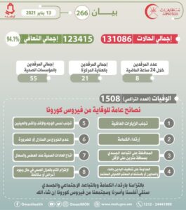 بيان رقم ٢٦٦ من وزارة الصحة بعدد الإصابات والتعافي