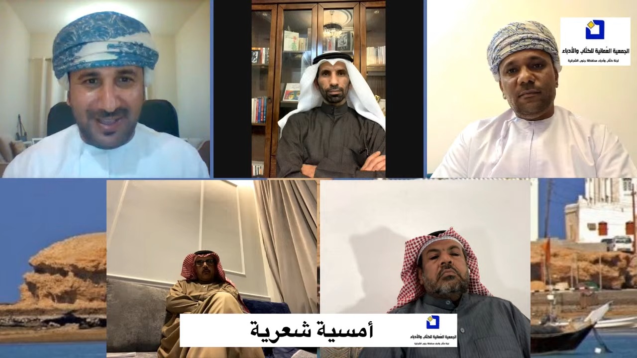وقد شارك في الأمسية كل من الشاعر الكويتي عبدالله الفلاح والشاعر السعودي رده السفياني والشاعر السعودي مشعل دهيم والشاعر خالد الداودي من السلطنة وأدارها الشاعر عبدالعزيز العميري على برنامجي (زووم واليوتيوب) .