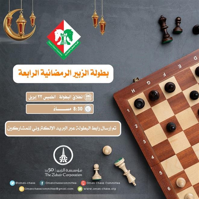 اختتمت اليوم منافسات فئتي الشباب والناشئين وعموم الفتيات ببطولة الزبير الرمضانية الدولية للشطرنج في نسختها الرابعة، التي تقام عبر الاتصال المرئي بإشراف اللجنة العمانية للشطرنج ، وبمشاركة /128/ لاعبًا ولاعبة من داخل وخارج السلطنة.