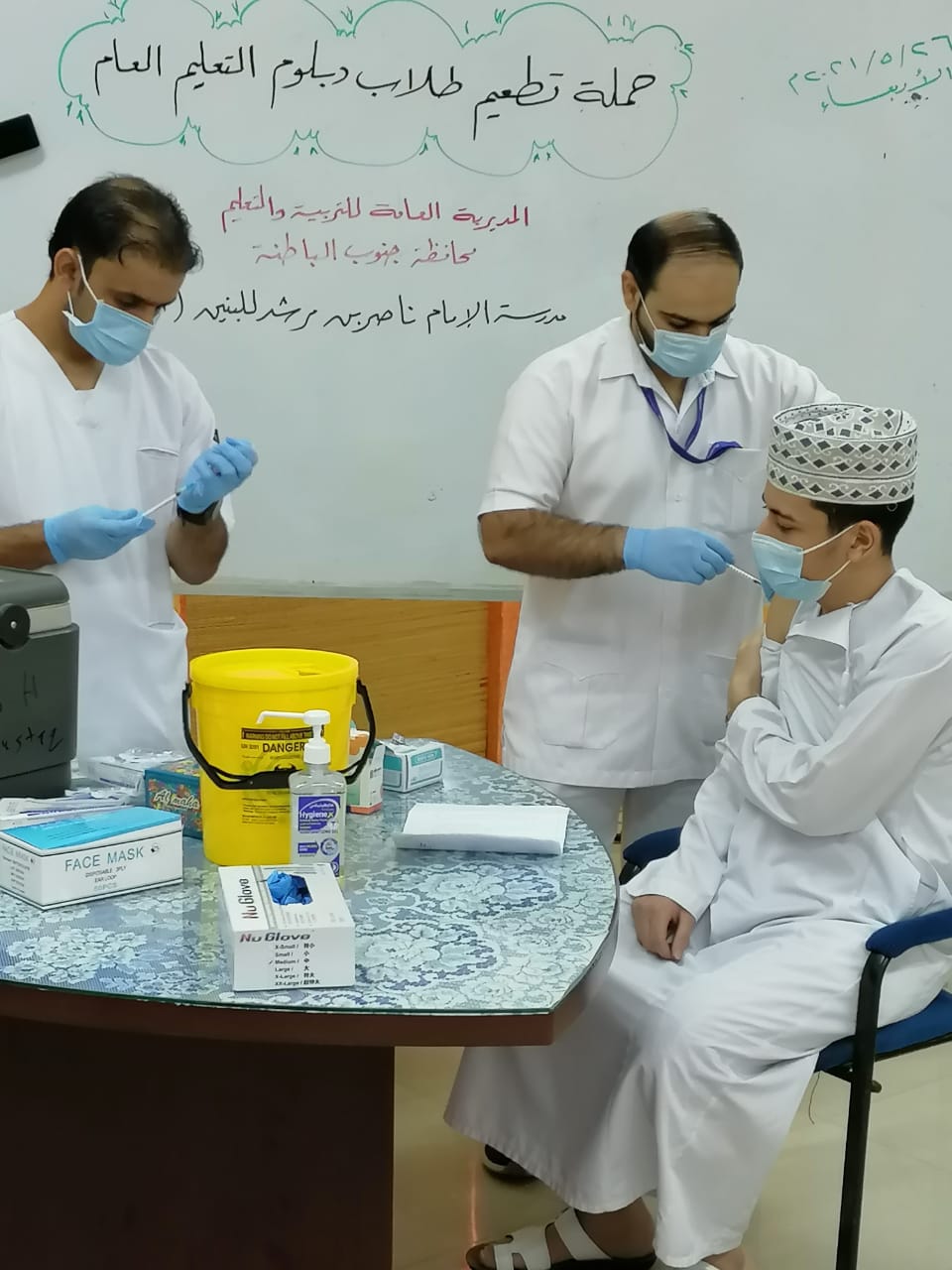 دشنت صباح اليوم المديرية العامة للخدمات الصحية بمحافظة جنوب الباطنة حملتها لتحصين طلبة دبلوم التعليم العام بمدارس المحافظة بالتعاون مع المديرية العامة للتربية والتعليم بالمحافظة والتي ستستمر حتى تاريخ ٣ يونيو ٢٠٢١ مستهدفة الفئات التالية :